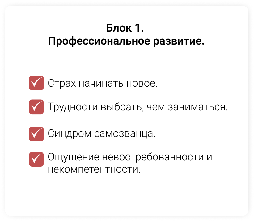 Хотите почувствовать свою ценность, индивидуальность и уникальность. Не хватает уверенности в продаже своих профессиональных умений. Вам трудно называть себя профессионалом и экспертом, возможно вы боитесь конкуренции.